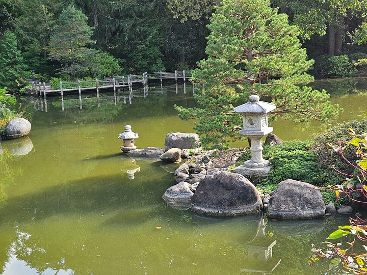 Then there was the Japanese Garden to get our Zen on. Beautiful day. Beautiful garden. Very peaceful. We had a great blue heron hanging out posing for pictures. Lots of ducks. Lots of koi. A Japanese tea house tucked into the woods. Waterfalls. We had lunch at a farm to table restaurant, and all in all, a very successful field trip. I leave you with some pictures from our adventure...